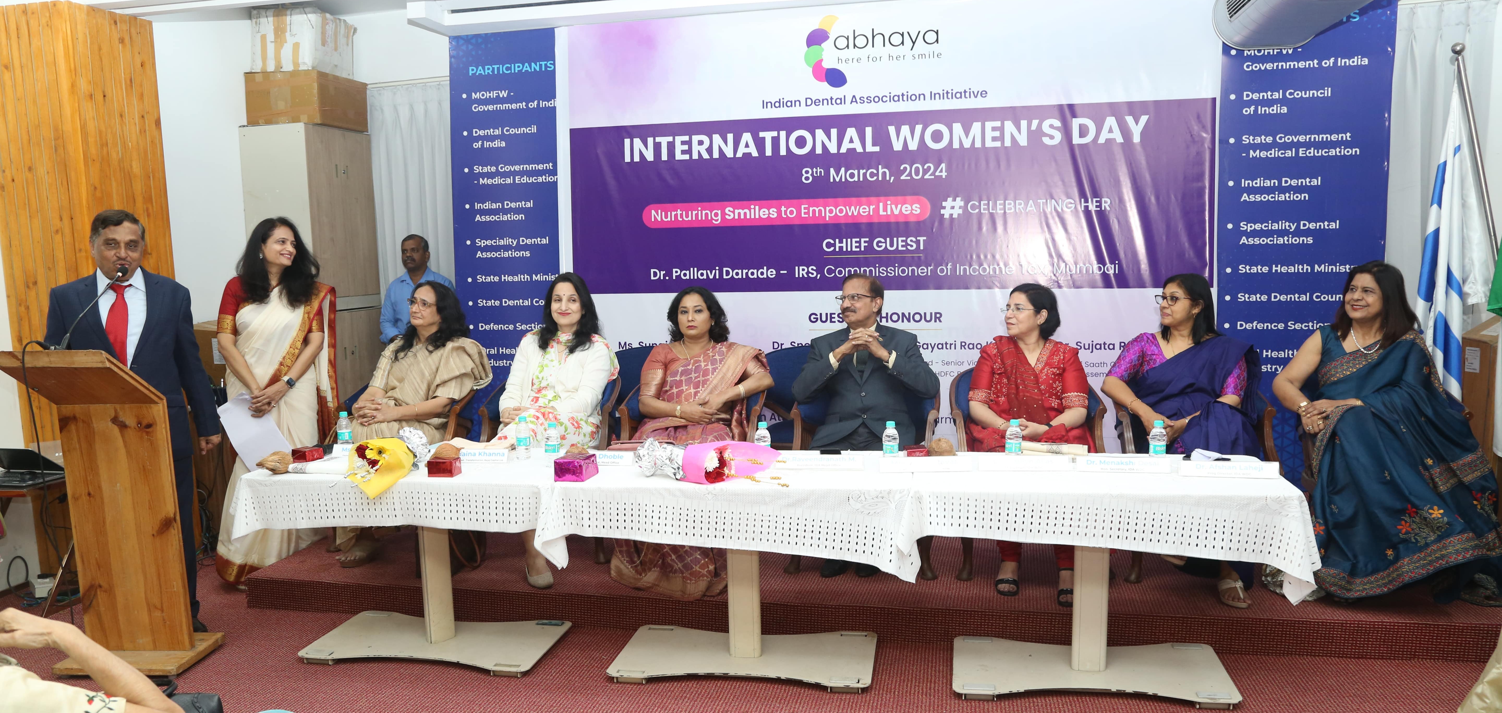 The Indian Dental Association (IDA) celebrated International Women’s Day under its initiative for women’s oral health, “Abhaya” in collaboration with Group Pharma. The event, held on 7th March 2024 at IDA head office at Mumbai, witnessed a gathering of esteemed guests and dental professionals, showcasing a collective commitment to advancing women’s oral healthcare. Women's oral health is an overlooked part of the complex web of healthcare, yet it profoundly affects the general well-being. A range of issues like lack of awareness, inequitable access to care and demanding household chores characterize India’s diverse landscape. This makes targeted programs like Abhaya initiative that enhance access for women to oral healthcare more necessary than ever before.